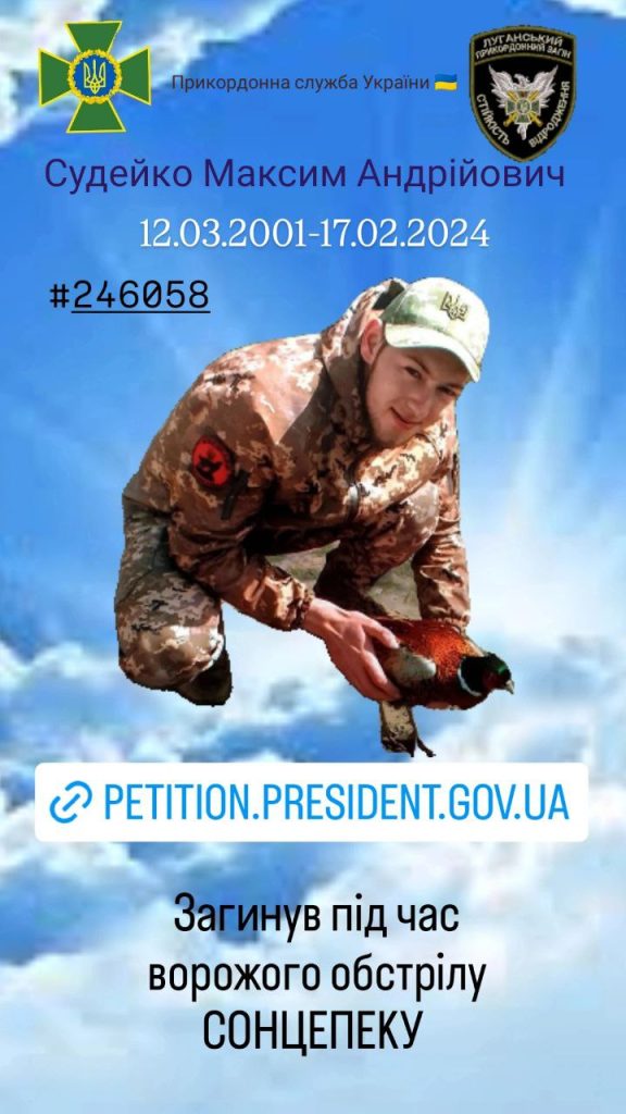 Шановний пане Президент! До вас звертається сім’я загиблого захисника Максима Андрійовича Судейка (позивний “МАКАР”).