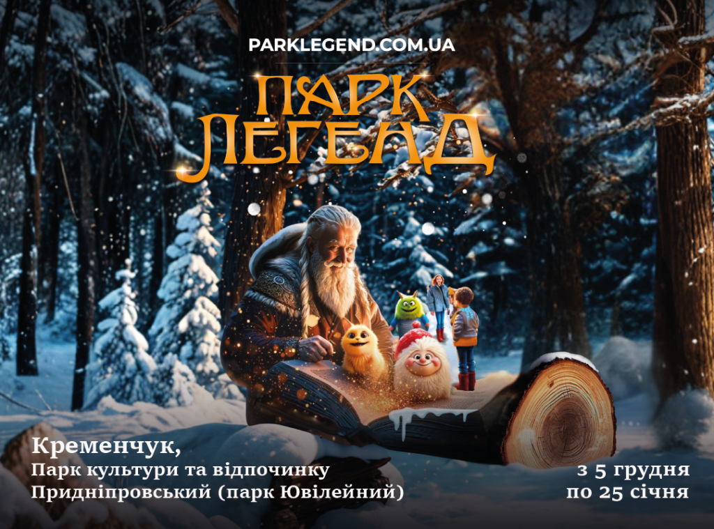 З 5 грудня у Кременчуцькому парку культури і відпочинку Придніпровський стартує «Парк Легенд» – унікальний проект, де казкові велетні, тролі та інші міфічні істоти оживають завдяки сучасним технологіям аніматроніки. Гостей зустрічатимуть інтерактивні гіганти заввишки до 5 метрів, які рухаються, розмовляють і реагують на присутність людей.