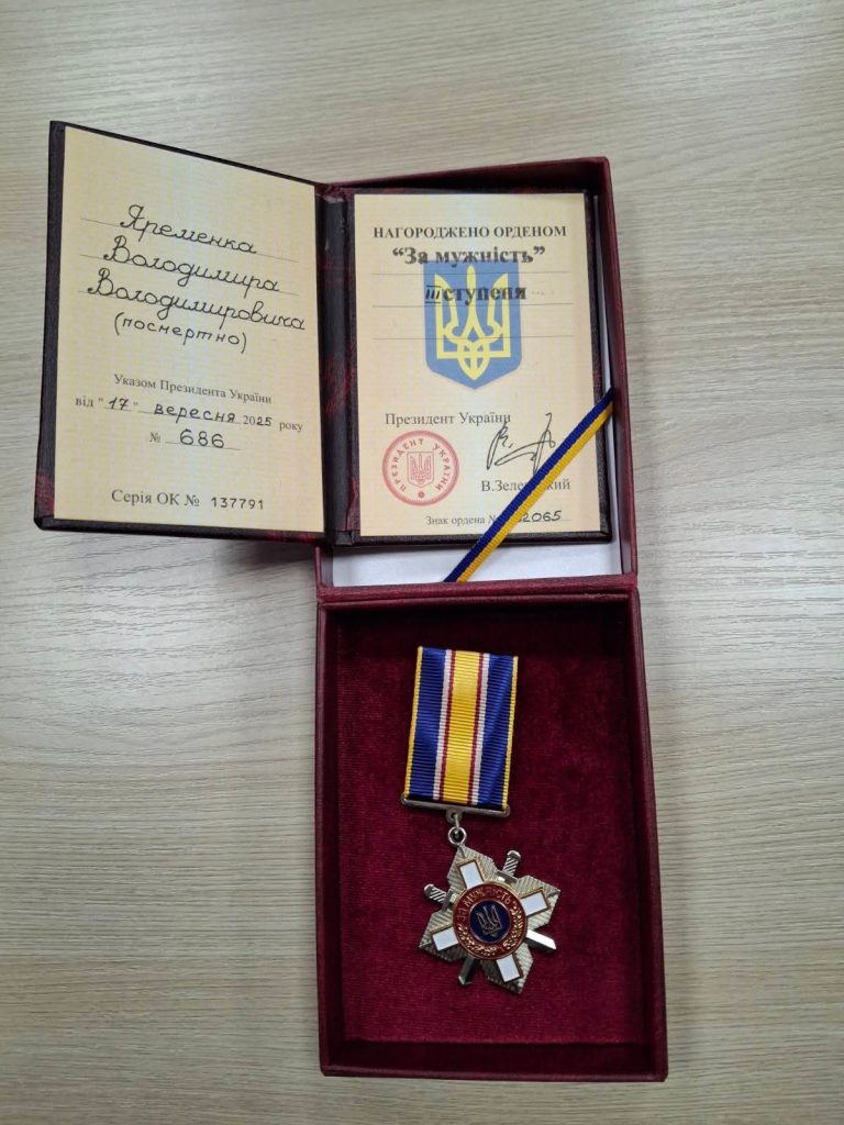 Полеглого Захисника Володимира Яременка, із Краснолуцької громади, посмертно нагородили орденом “За мужність”
