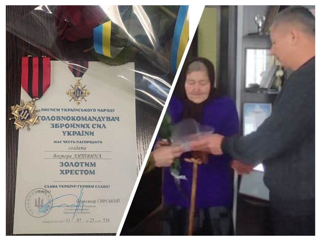 Сьогодні мамі нашого земляка солдата Віктора ЛИТВИНА, який вважається зниклим безвісти, було вручено відзнаку Головнокомандувача Збройних сил України — «Золотий хрест».