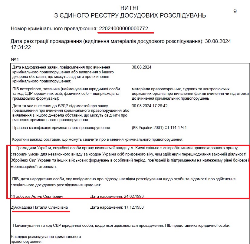 Що цікаво, це не єдиний епізод такої от незаконної спецслужбістської “роботи” Гарбузова за останній час. Так, в інтернеті з’явилися матеріали кримінальної справи щодо іншої ухилянтської схеми, у якій Гарбузов фігурує… як головний обвинувачений по статті 114-1, ч.1 Кримінального кодексу (Перешкоджання ЗСУ в особливий період; максимальне покарання — 8 років позбавлення волі).