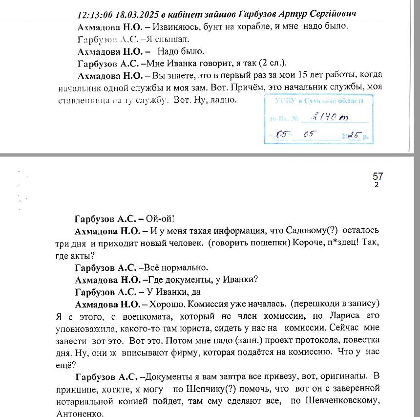 Судячи з матеріалів справи (див. нижче), які з’явилися в публічному просторі, Гарбузов організував через Управління соціального захисту населення Голосіївської РДА в м.Києві масову видачу довідок для ухилянтів. Його подільниця у справі — начальниця цього Управління Наталія Ахмадова. Серед сум, що фігурують у справі, та які зв’язка Гарбузов-Ахмадова отримали від ухилянтів вражає — 3 млн грн. І це тільки по одному з багатьох епізодів, про які стало відомо слідству і загалу.